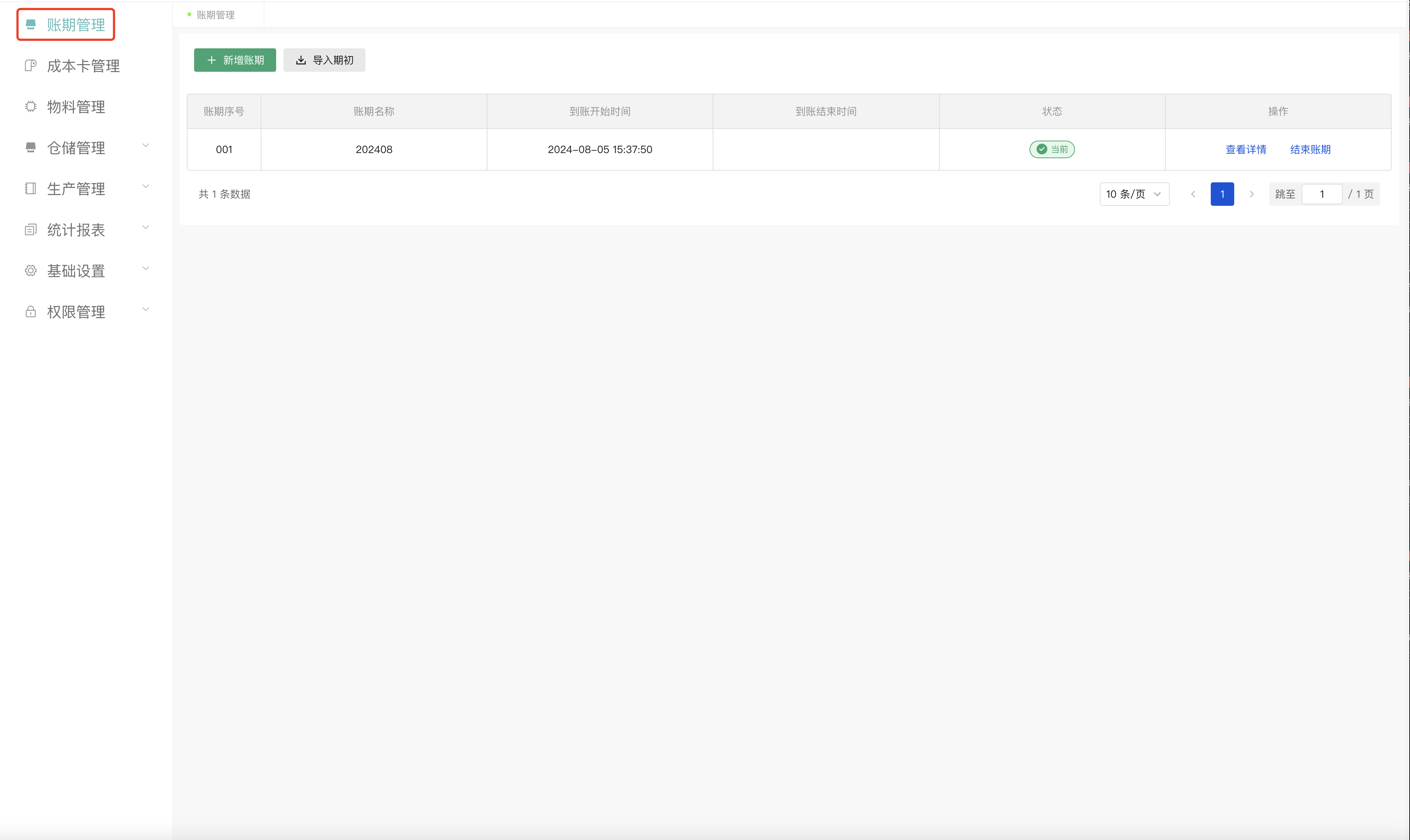 您可以随时查看当前或历史账期的详细结存信息,包括各物料的起初期末数值。