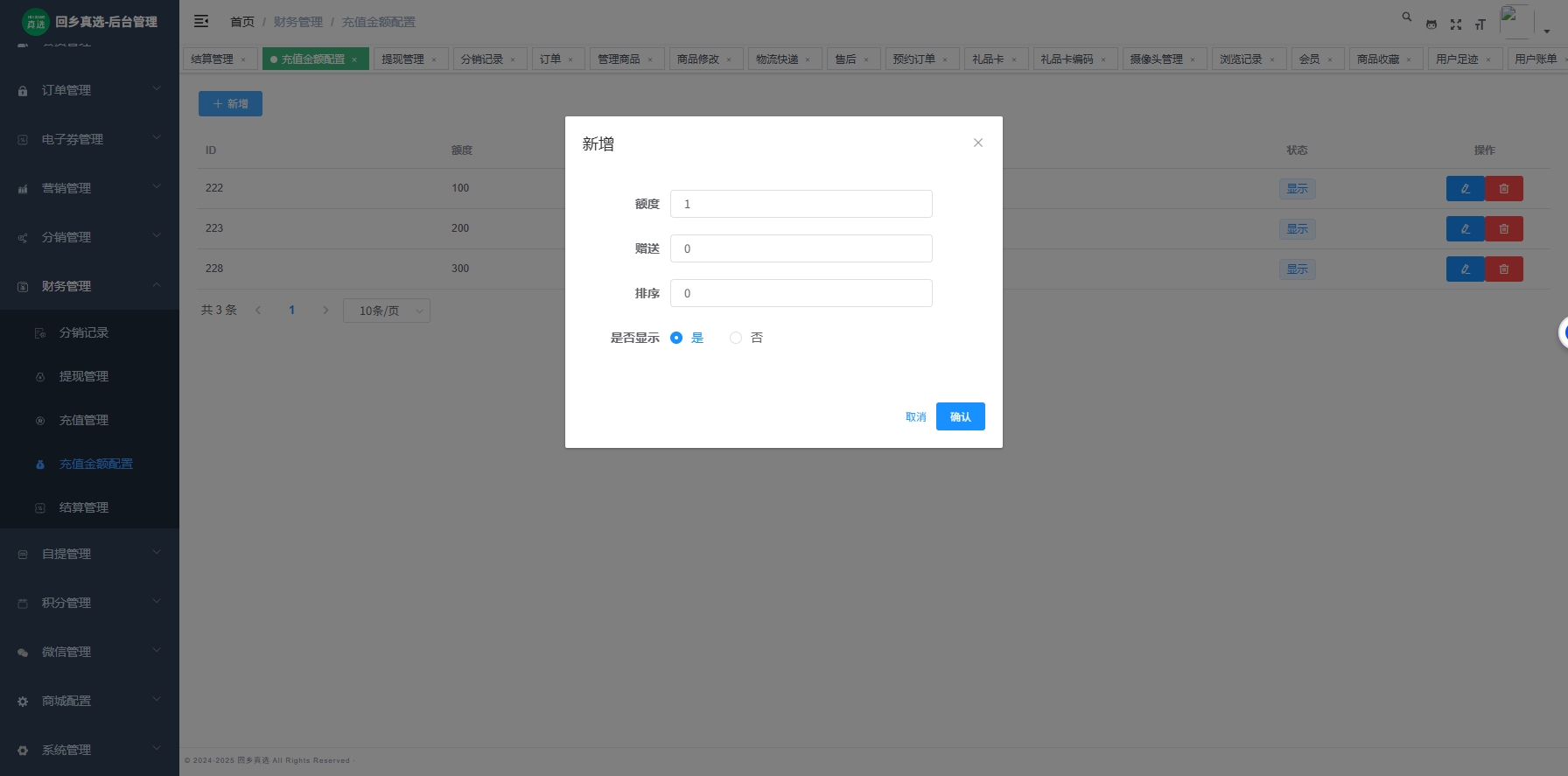 3.1 充值列表管理